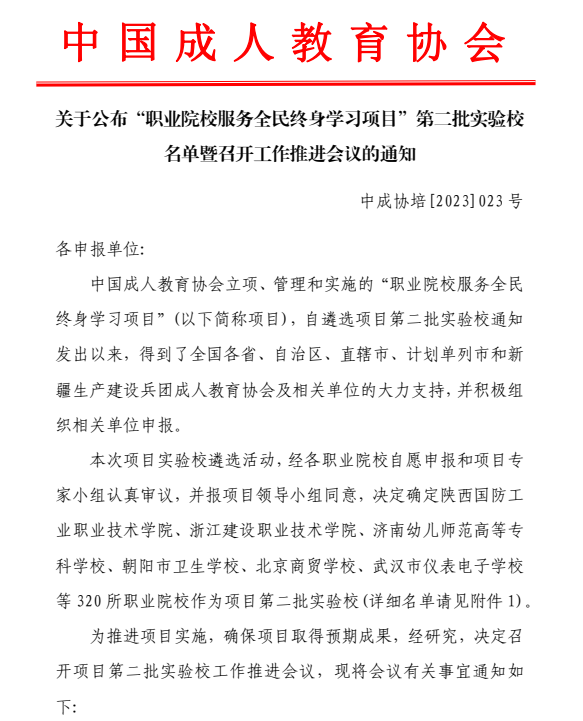 近日,由中国成人教育协会立项、管理和实施的“职业院校服务全民终身学习项目”第二批实验校公布遴选结果,经项目专家组评议,全国167家高职院校入选,我校“职业教育助力乡村振兴”项目榜上有名。
